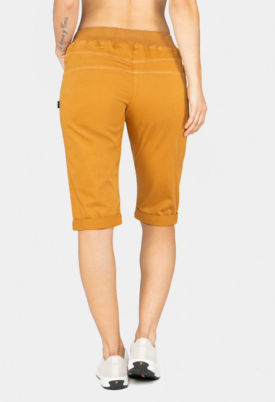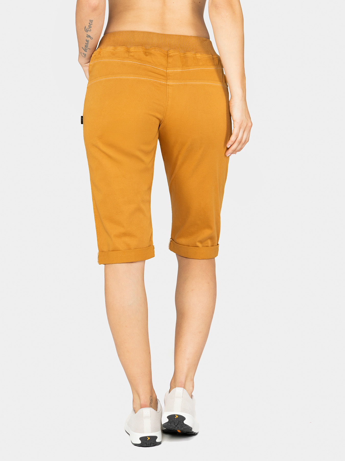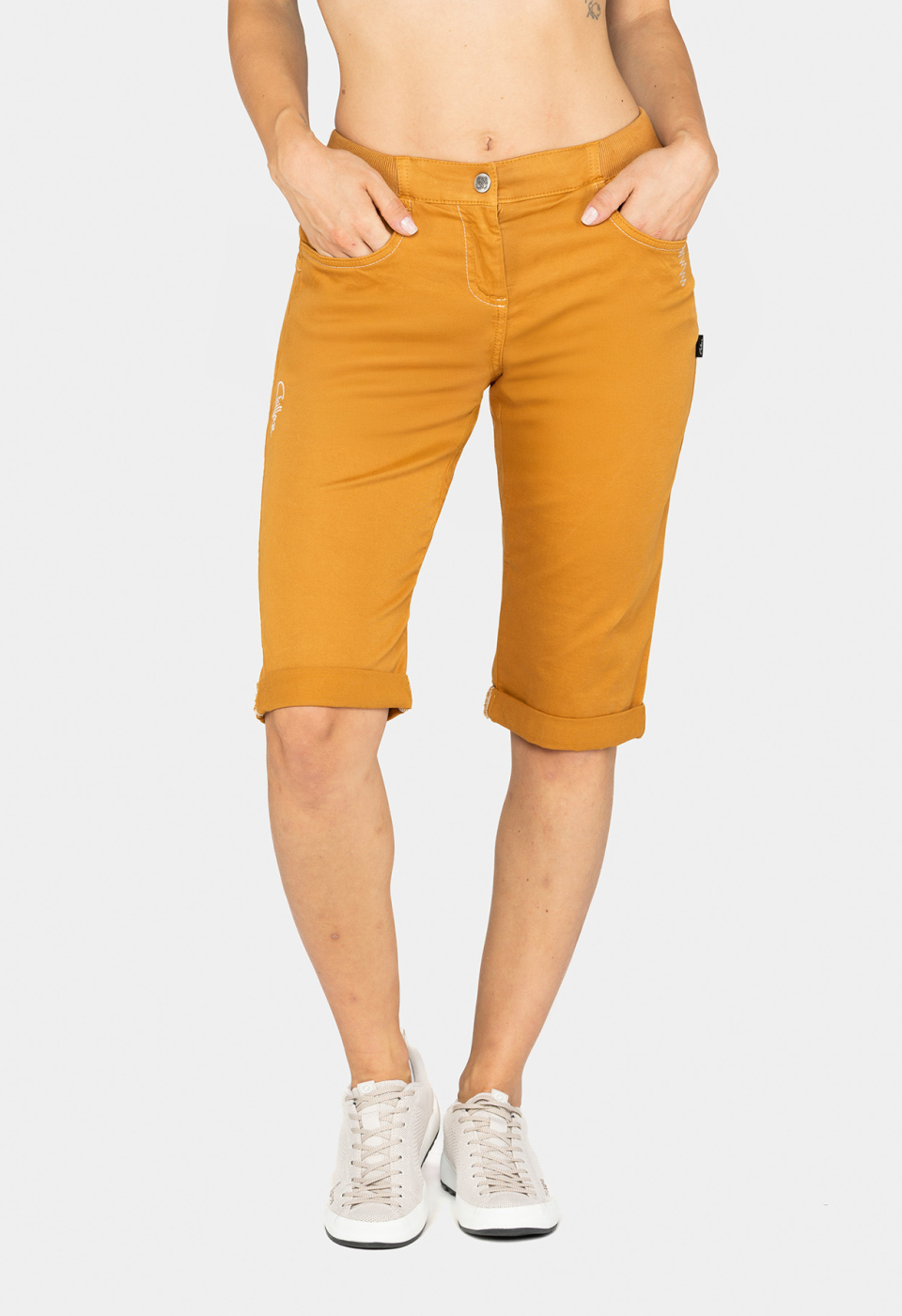 The arguably sturdiest women’s pants in the Chillaz line-up Jessy is available as a 3/4-climbing shorts as well! Freedom of movement provided by the stretchy material, the relaxed cut and the inserted gusset. The elastic waistband with drawstring ensures a good fit. As usual it is fashionable for everyday life, but this Chillaz Short certainly feels most at home on the climbing wall.