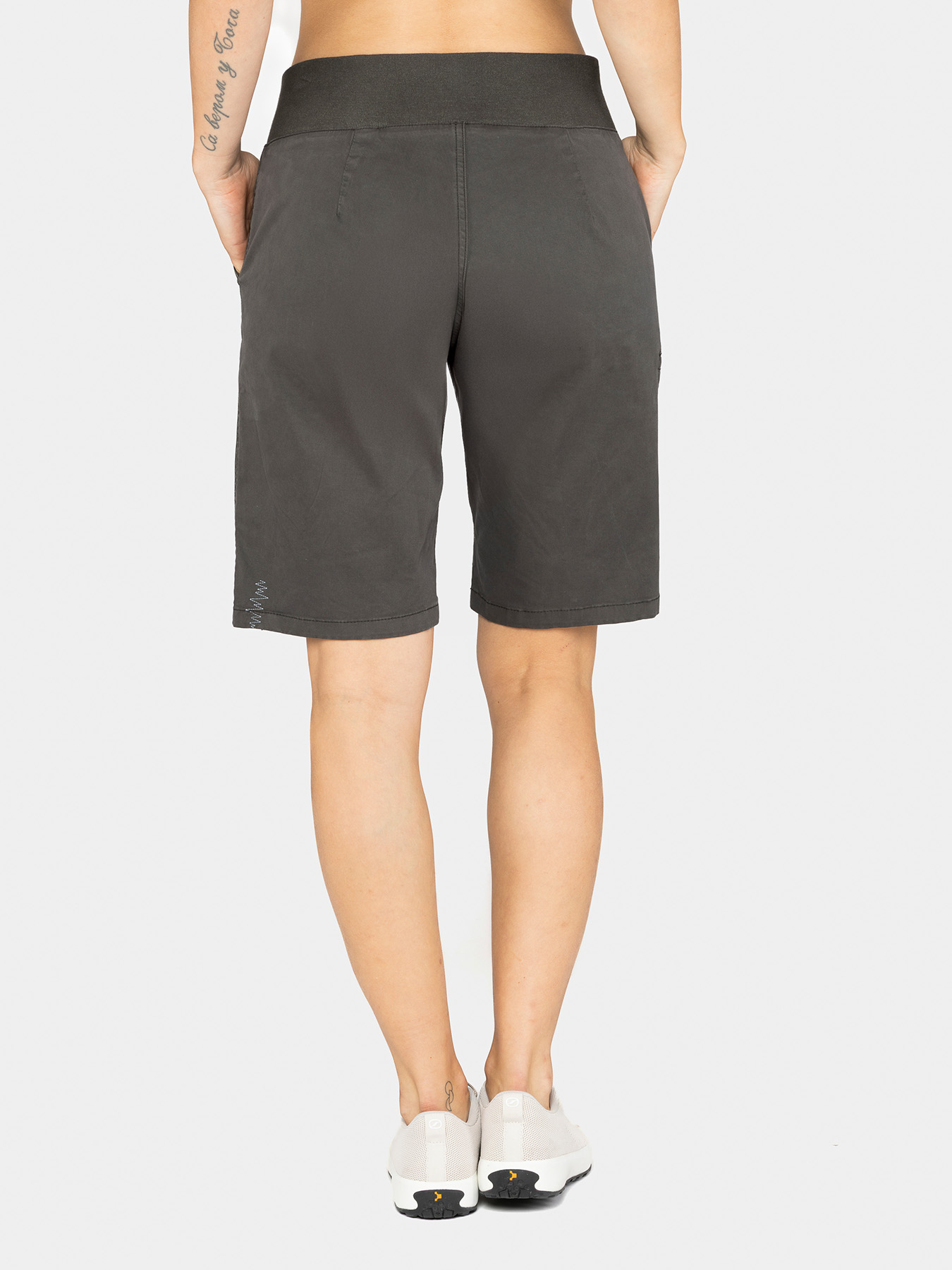 Die kurze Hose Mallorca begleitet dich entspannt vom Kletterfels bis ins Café, so vielseitig wie die gleichnamige Insel im Mittelmeer, bekannt für ihre sonnigen Küsten. Unter dem Gurt super bequem ist der hohe elastische Bund, der lockere Schnitt ums Gesäß lässt viel Bewegung zu. Baumwolle mit etwas Elasthan sorgt für angenehmen Stretch, Einschubtaschen und Handypocket runden die Hose ab.